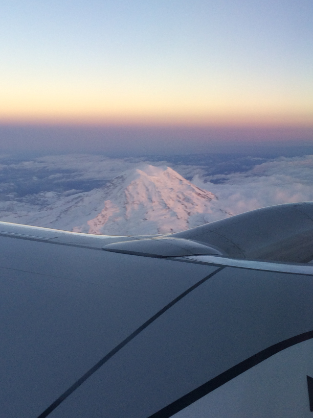こちらは、飛行機から見えた「タコマ富士」こと Mt. Rainier。富士山より標高が高く、すっかり雪化粧。