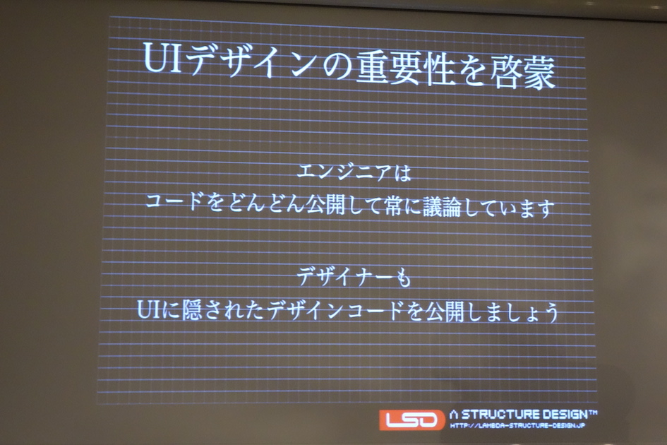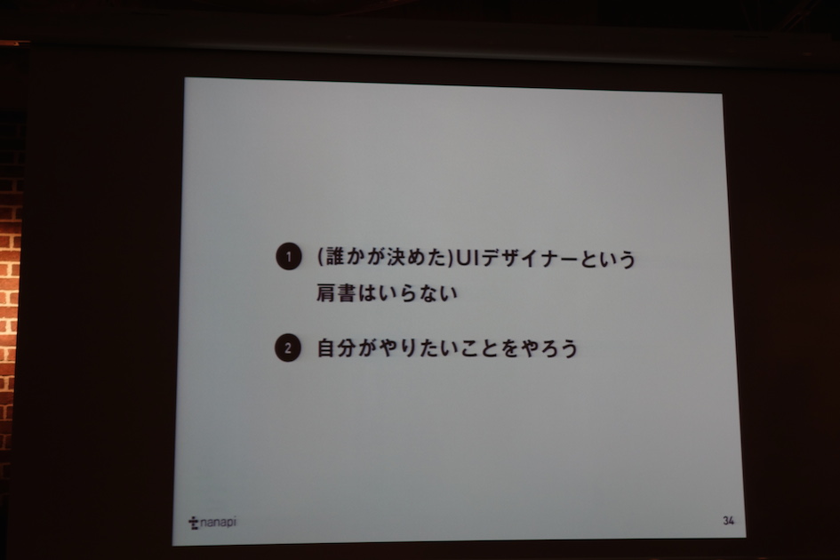 UIデザインに投資しても短期的にはリターンが小さいので投資されづらいという現実の中で、UIデザイナーはどうするべきなのかに対する見解を述べられてました。
