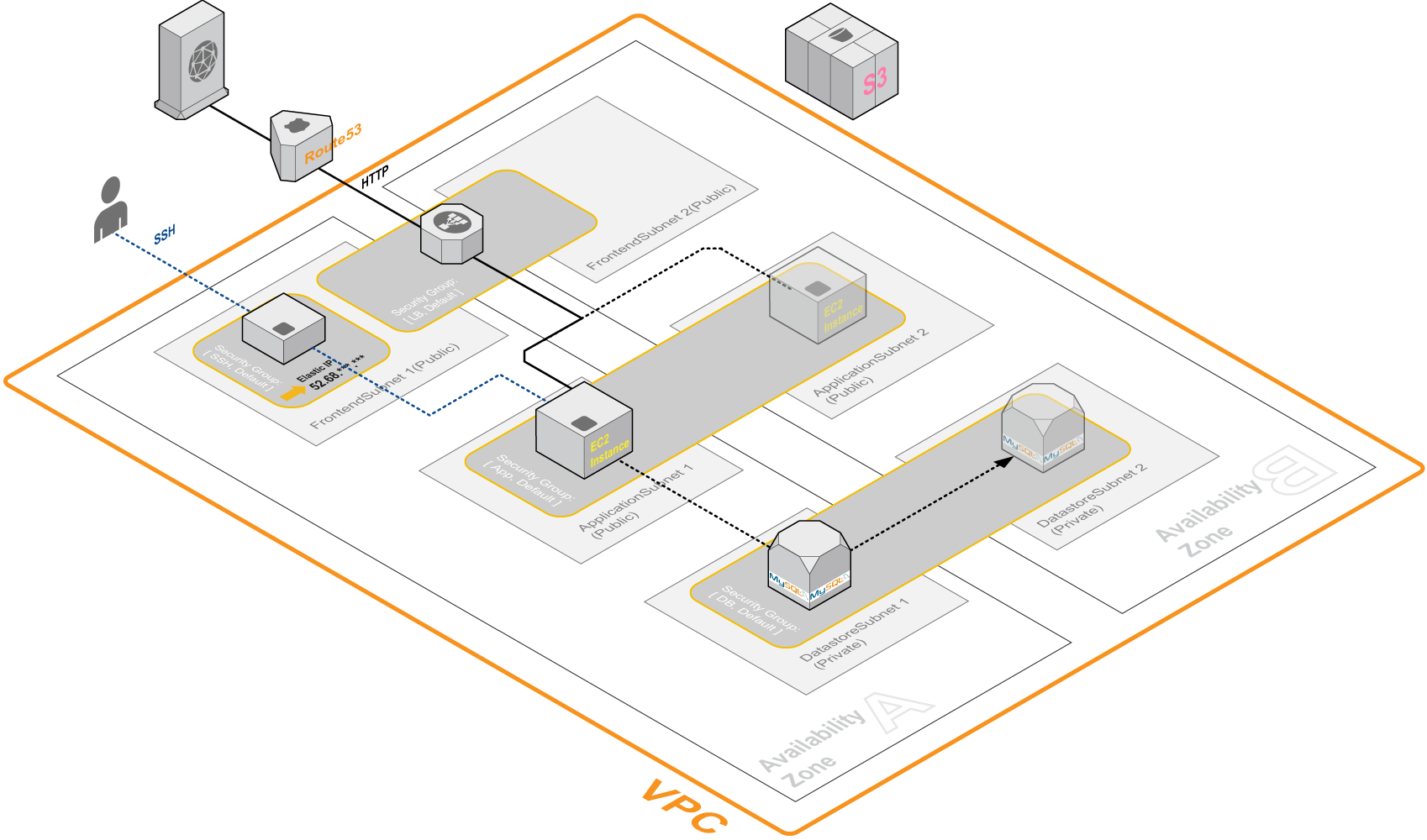- DB サーバー(RDS)は Datastore サブネット上に構築