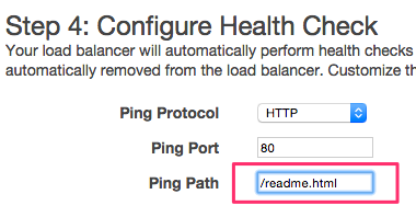 Ping Pathを/readme.htmlに書き換えます。それ以外の項目は、すべてそのままで OK です。