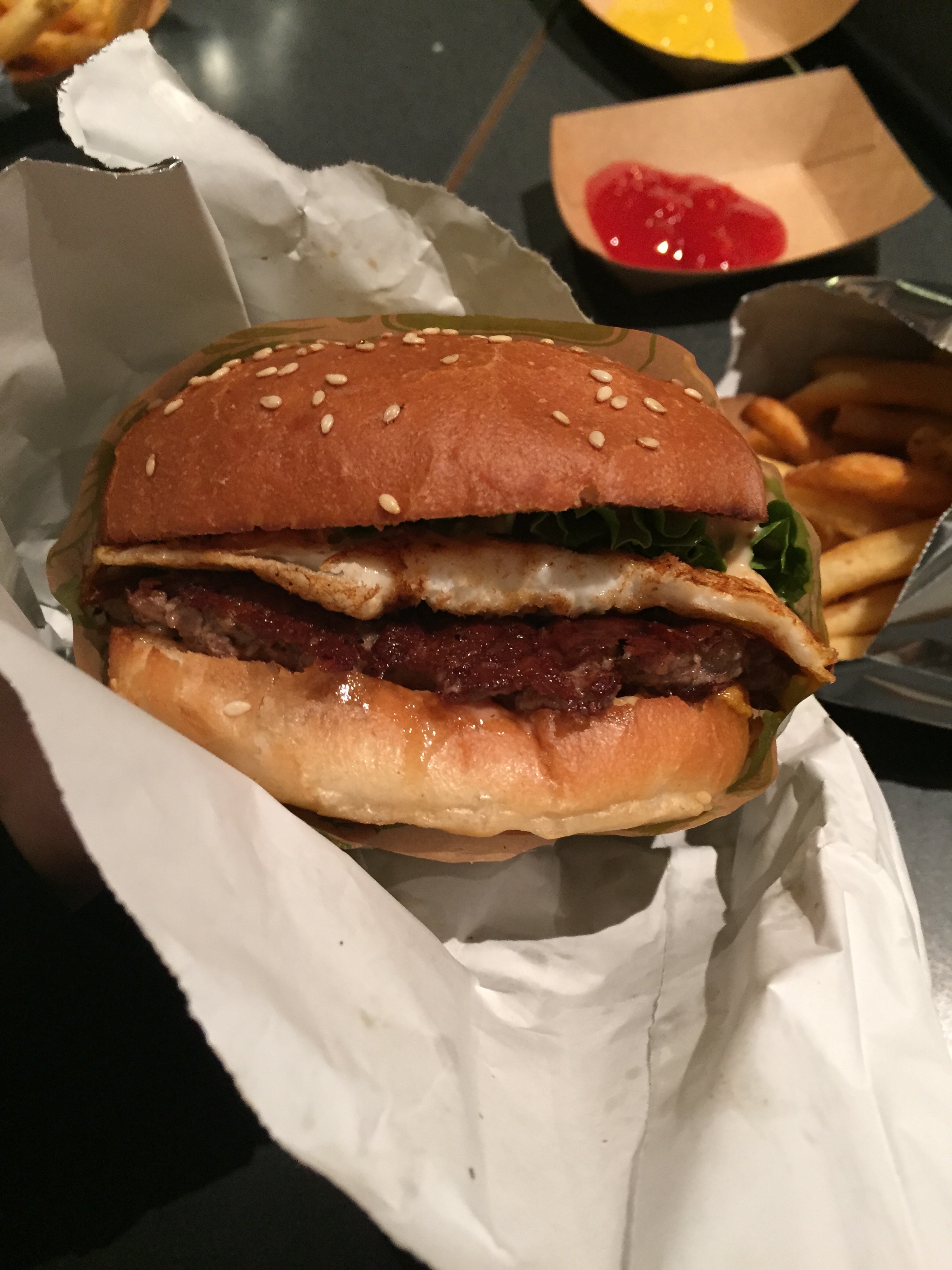 「もう会場が用意する食事はイヤだ」ということで、外に食べに行きました。WWDC 2015 Attendee ListのSlack上でオススメされていたSuper Duper Burgersという有名なハンバーガーチェーン店です。肉もジューシーでおいしかったです。