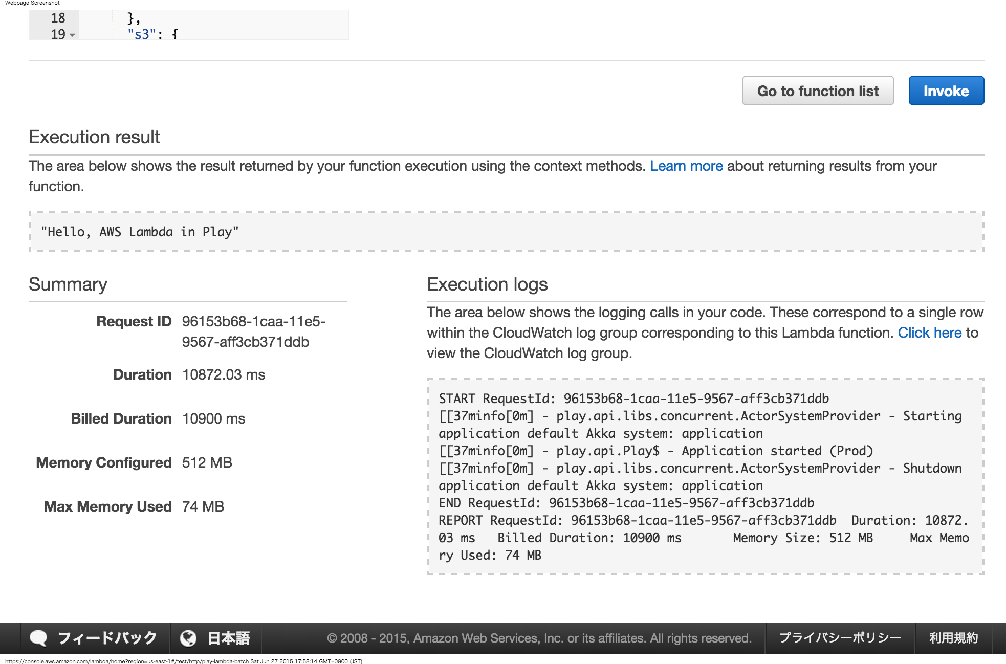 今回はこの AWS Lambda 上で Play(Scala) アプリケーションのバッチ処理を実行してみます。