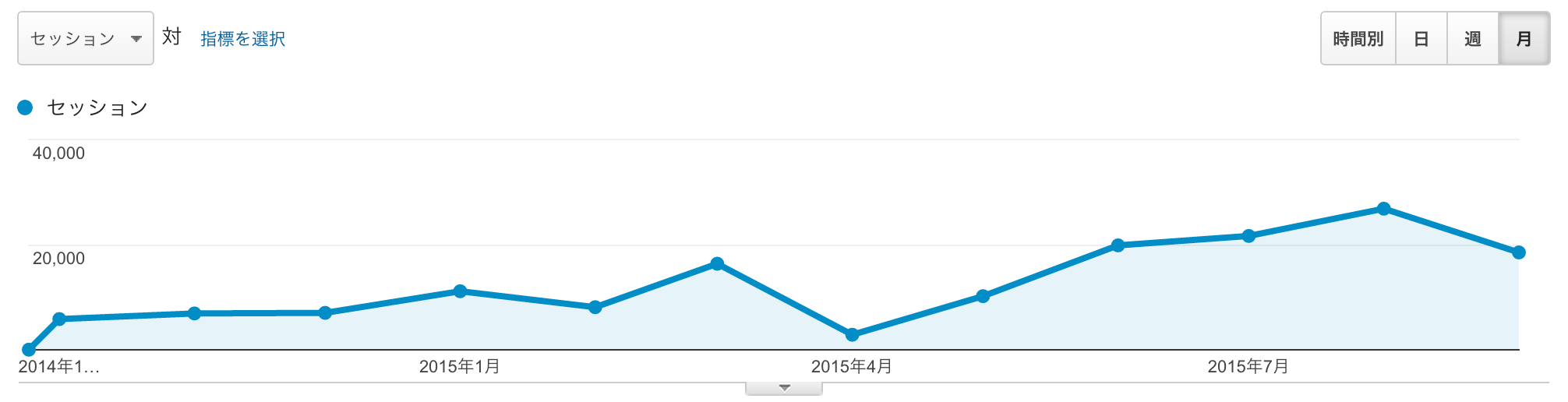 2015年4月 ~ 5月のセッション数・アクティブユーザー数が公開記事数に反しておもいっきり下がっていますが、Google Analytics の解析自体が出来ていないことが原因として考えられます。理由は、この時期に WordPress テーマのリファクタリングと AWS へのサーバー移行をしていく中でうっかりGoogle Analyticsのトラッキングコードを消してしまっていたためです。はい、完全に僕のミスです。弁明の余地もありません。