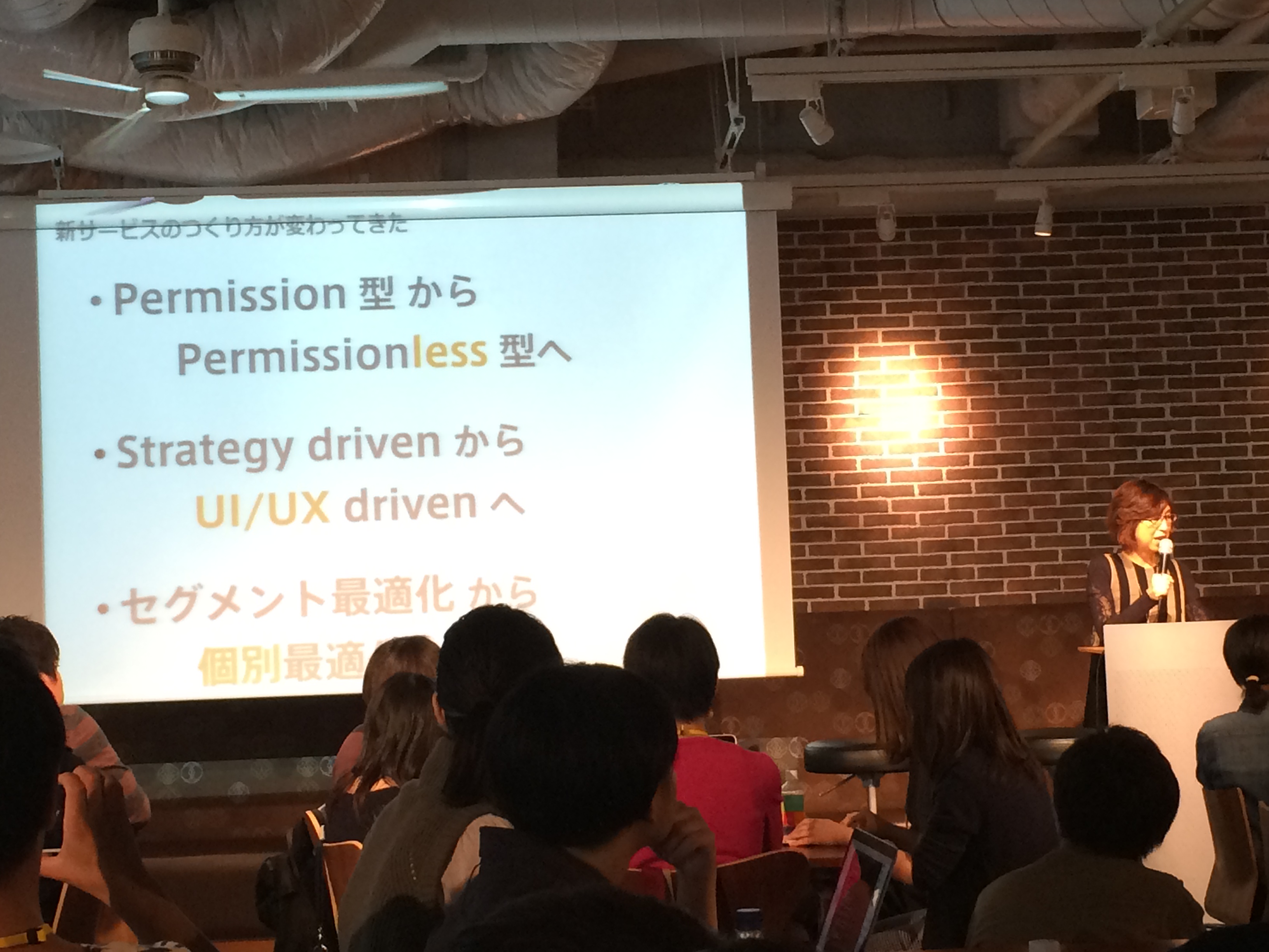 こうした経験から、『経営会議はやめよう!』『考えながら作って!』という方針に切り替えました。企画中のサービスを経営会議でジャッジすることはとても難しいため、リリースしてから持ってきてもらうようにしました1)最低限の法務等のチェックされているそうです。。そのとき必ず数字を持ってきてほしいのです。特にリピート率を見ます。本当に良いサービスであれば、ユーザーは勝手に使ってくれるからです。数字の結果が良ければ、私が良くないサービスと思っていても大規模プロモーションなどの全面的なバックアップをしていきます。「ジャッジを経営会議にさせるな!肩書の人ではなくユーザーにジャッジさせよう!」つまり、Permission型からPermissionless型に変化してきています2)すべてがこのケースということではありません。。