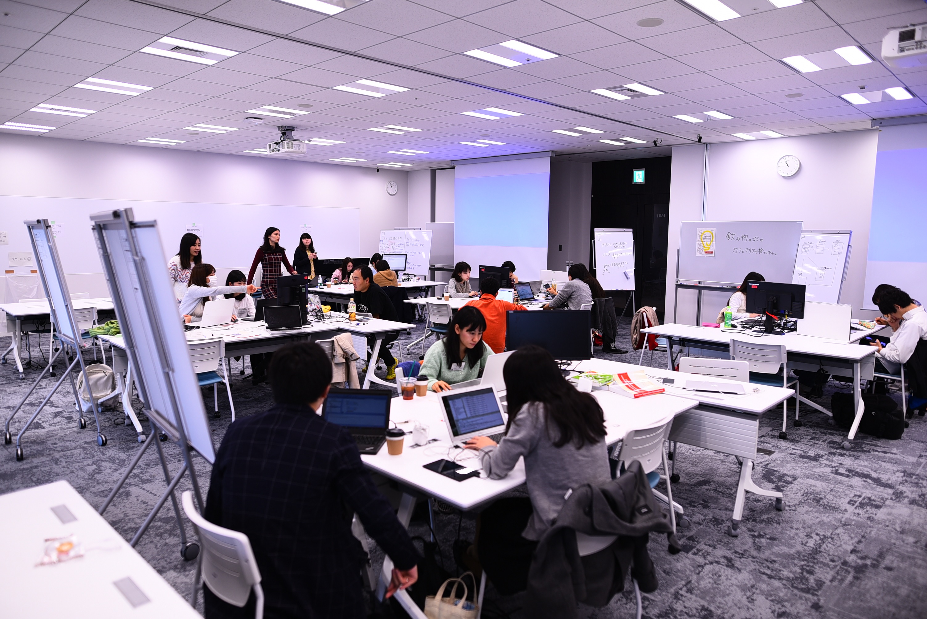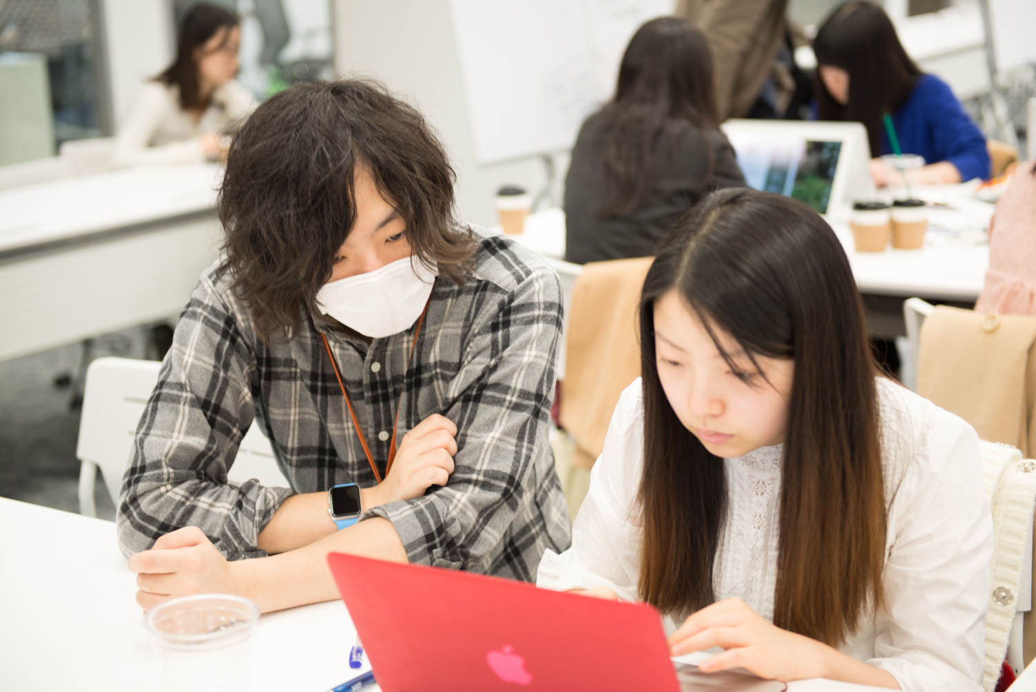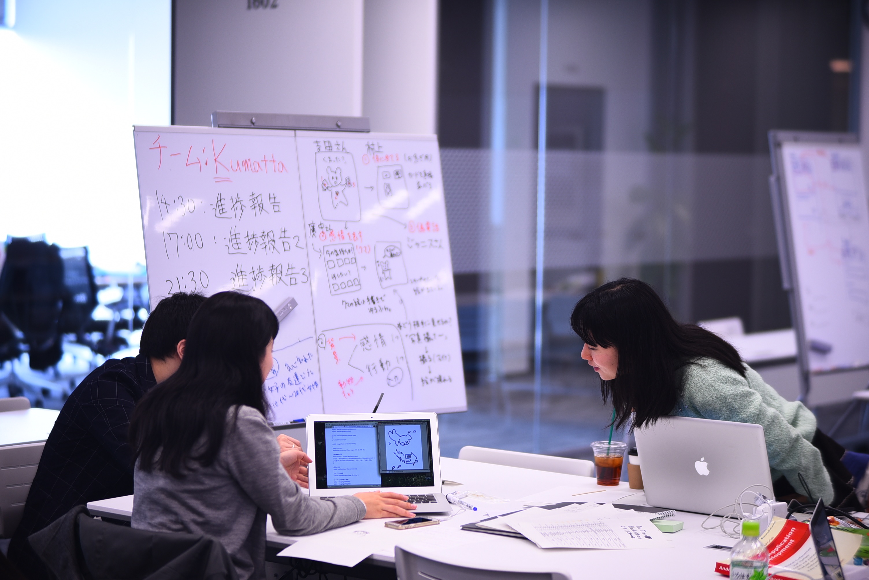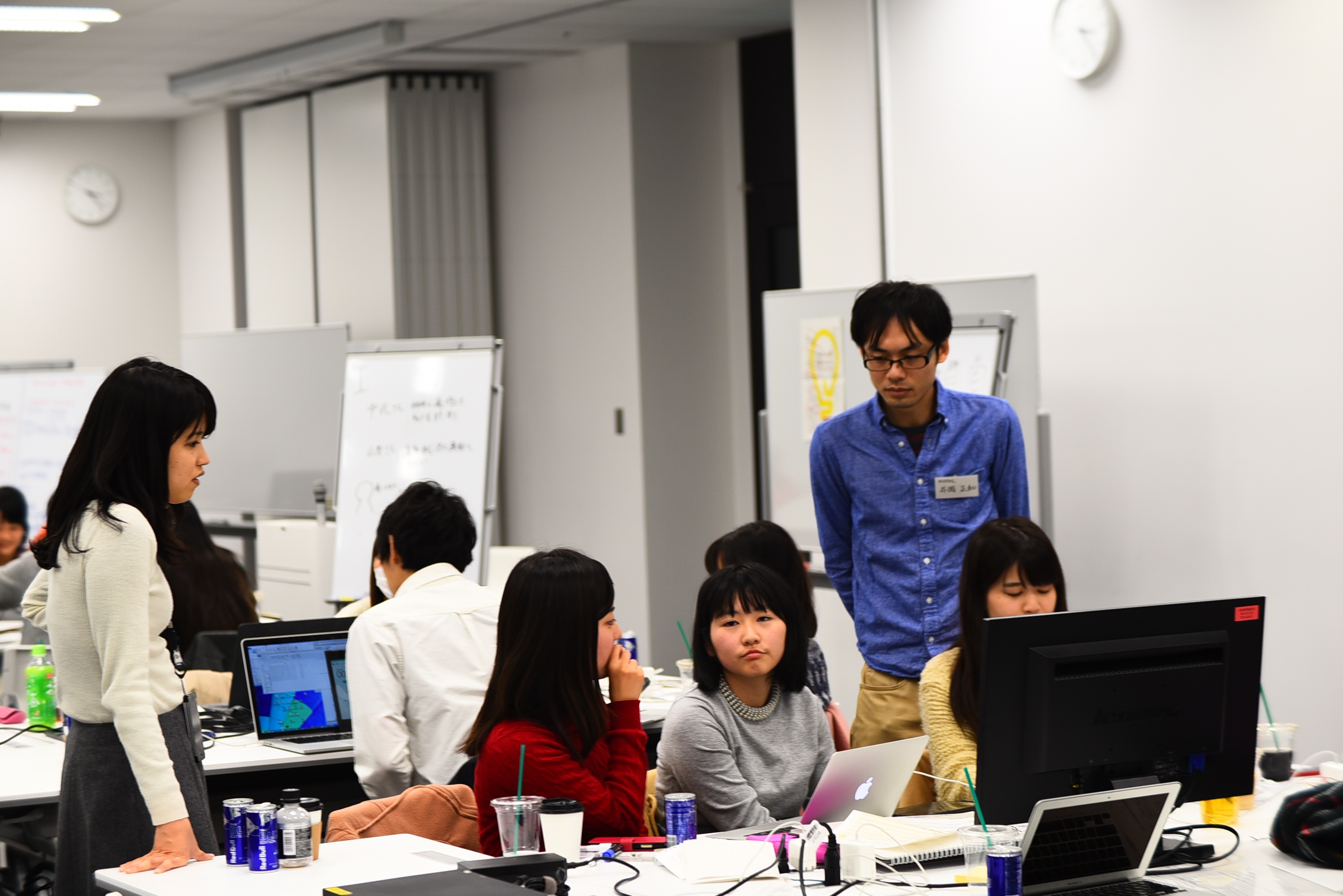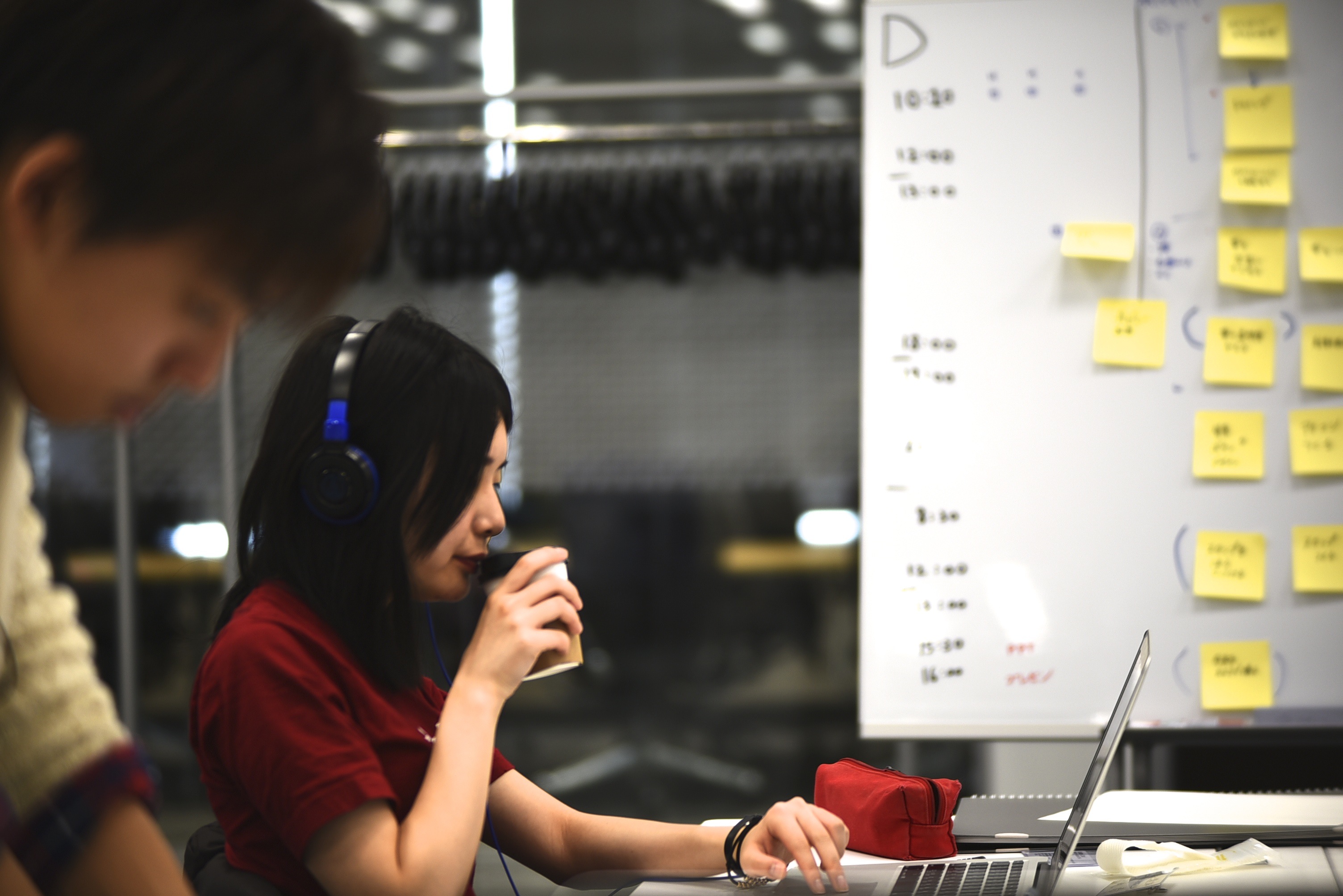 また、前述の通り参加者の中にはプログラミングの経験自体少ない学生もいましたが、アプリを作りたいという強い意志とプログラミングを学ぶことへの前向きな姿勢で、2日間のうちに急成長を遂げていました。東大女子の表情は真剣そのものです。
