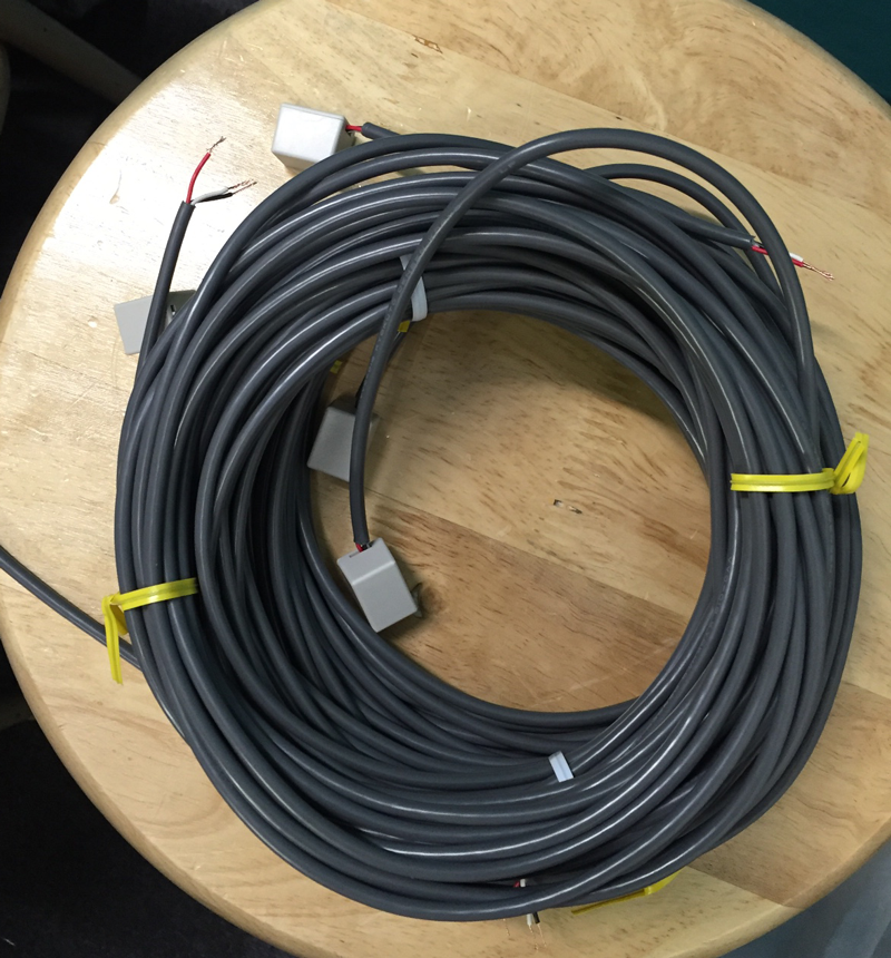 2枚目の写真はセンサー部分に保護パーツをつけてケーブルをまとめたものです。センサーは個室分の合計4つ用意しています。