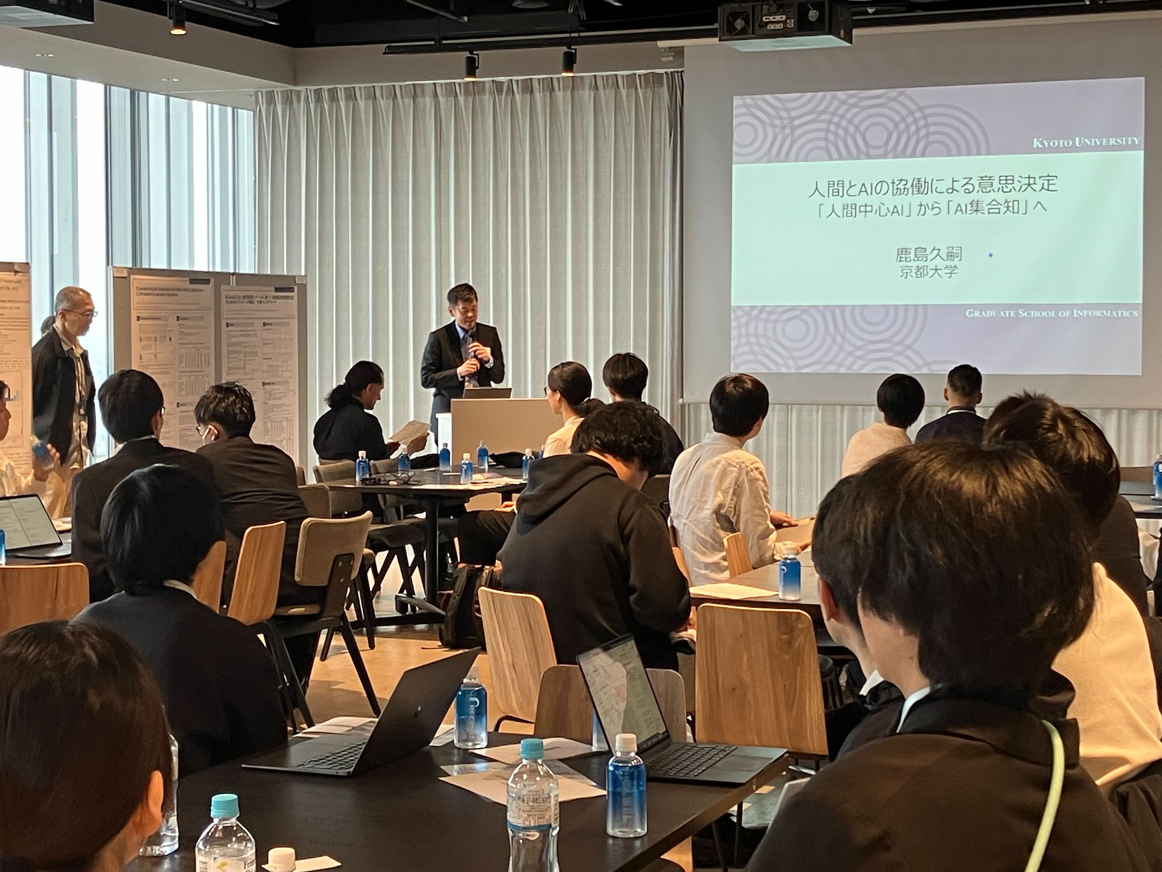 続いて、京都大学の鹿島久嗣教授が登壇。AIが単なる予測ツールから、人間のパートナー、さらにはAI同士が協働する 「集合知」 へと進化するパラダイムシフトについて、多角的な知見が共有されました。